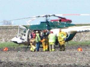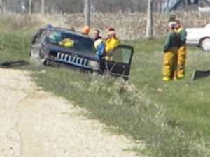 NorthIowaToday.com was told “AirMed was dispatched to an accident resulting in serious injury one fourth of mile south of Hwy 9 on Raven Avenue on Saturday afternoon. A 19-20 year old female was said to have head trauma after being ejected from the back seat of the Jeep. She was airlifted by AirMed at 3:23 pm. There were four people in the jeep at the time at the accident. The others were taken by Ambulance.”