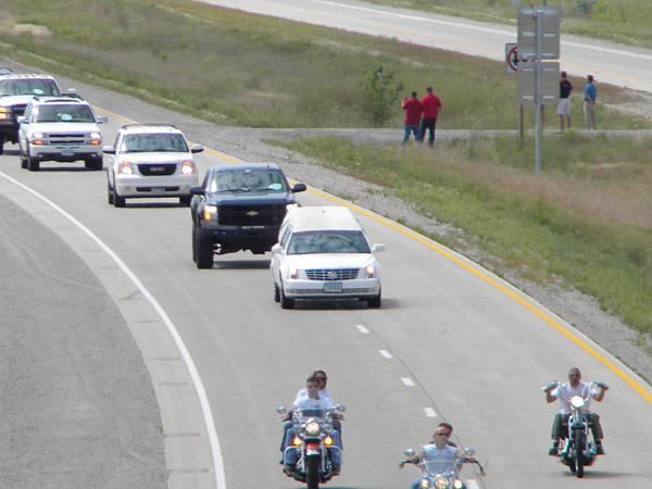 Tumilson’s family invited everybody to come and join in the motorcade, to show their respect for this Navy Seal that gave his life for his country. With this invitation, there were people lined up throughout the whole area from the airport, down Interstate 35 and the Avenue of the Saints to watch the procession of motorcycles and vehicles.