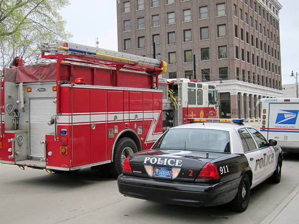 Fire trucks, police and an ambulance were all parked outside on West State Street, well off of the curb, but cars continued to drive by slowly and gawk at the situation. It was only until the ambulance pulled out to block the road did people not attempt to drive down the street.