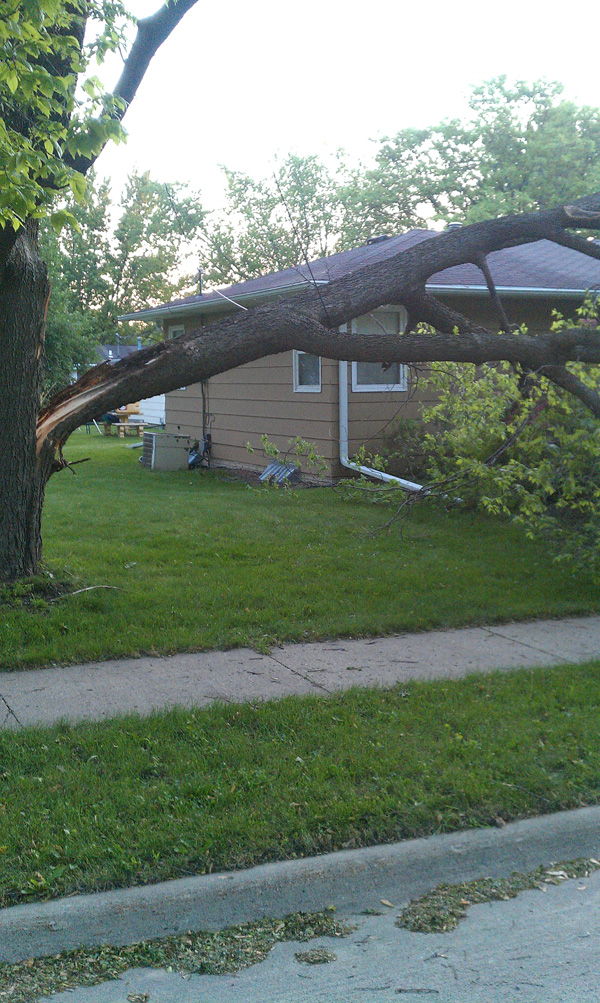 Above: Reader submitted photo of a fallen tree in the 900 block of 8th Street SW in Mason City.