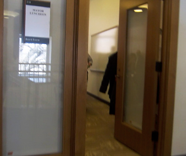 At the meeting, which was held in a second floor board room at the Mason City Public Library Wednesday at noon, a sign on the open door said only “MAYORS LUNCHEON.”