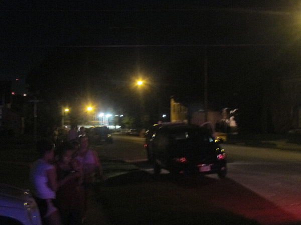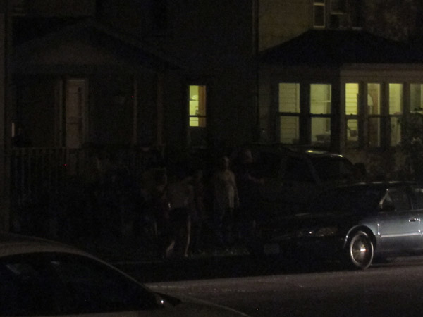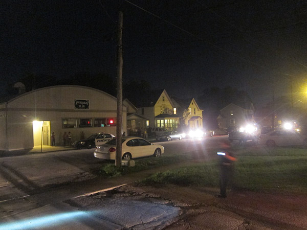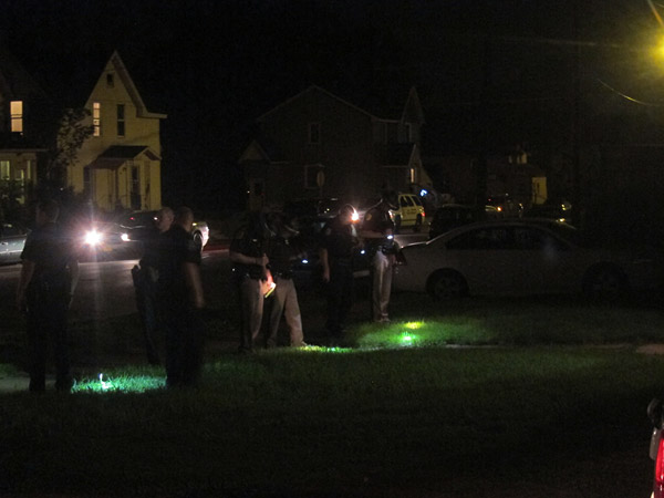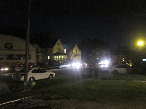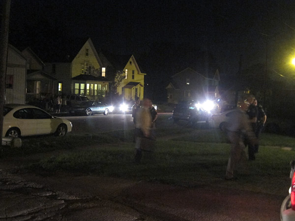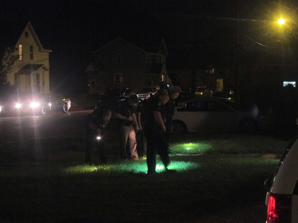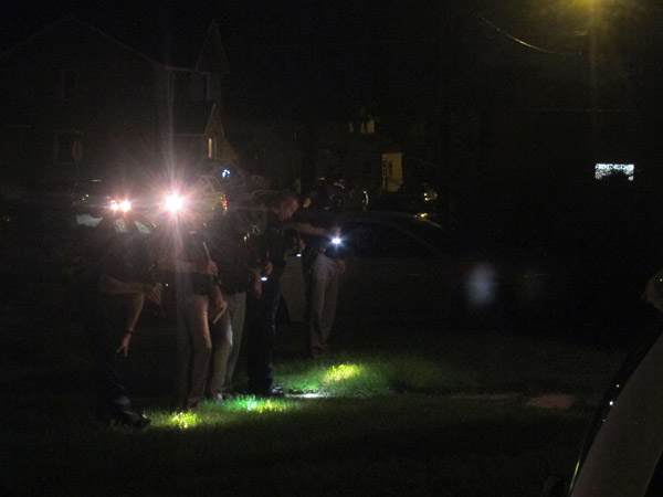 Police scoured the immediate area for clues. They searched alleys and adjacent yards while also questioning bystanders. Police formed a line with their flashlights and combed the front yard of the property. (See video.)