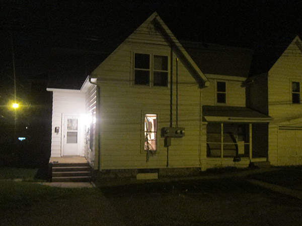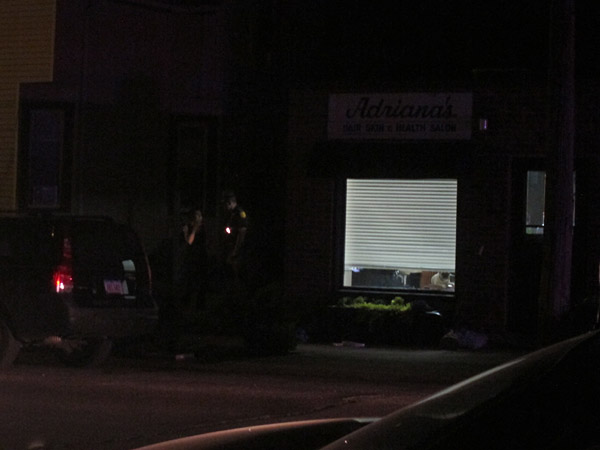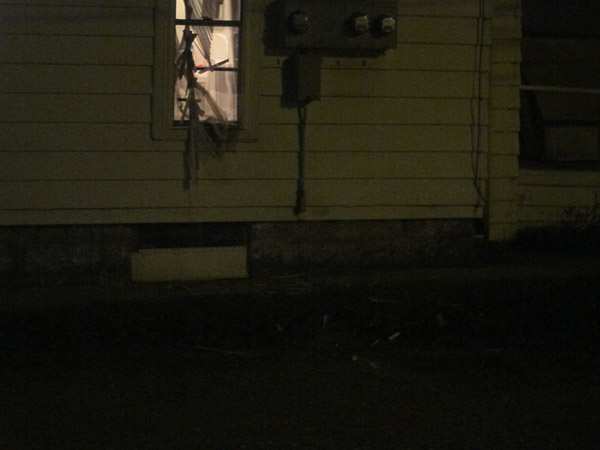 A police officer told the owner of the property where the incident took place, Ed Kent, that they had no choice but to break a window in order to see what was happening inside. Glass and pieces of the white sun shade were in the grass below the window. Mr. Kent said he would bill the city for the damage to his property. An officer offered to make sure the window was covered yet this evening, at least with plywood.