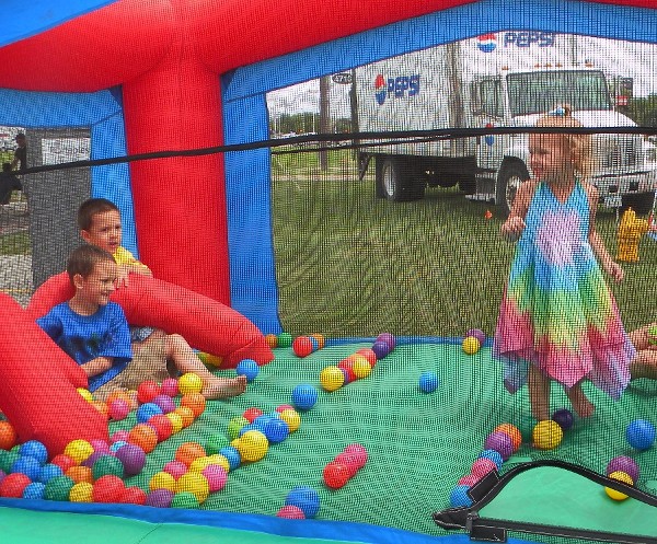 Siblings William Mora, age 6, Daniel Mora, age 5 and Devanie Mora, age 3, of Mason City, “Are just having a ball,” said grandma Vicki. “They love playing in the balloons,” brought in by Banks.