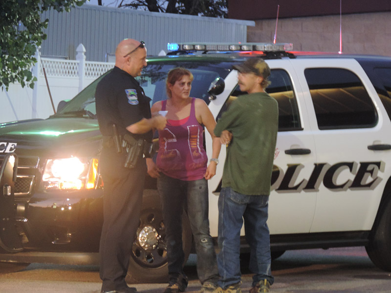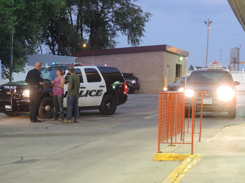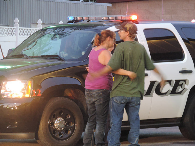 Two police cars arrived just moments later and discovered one male and two females near a red pick-up truck. Both females appeared to be upset and crying. The male sat in the driver’s side of the pick-up truck.
