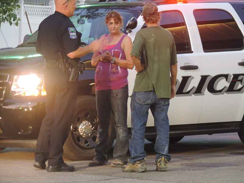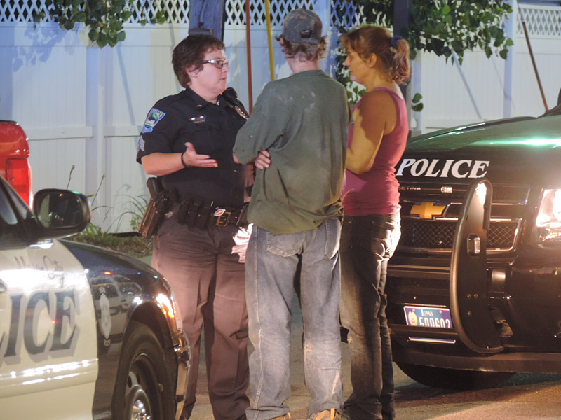 As police were taking statements, an agitated man in a green shirt walked quickly on Federal Avenue toward the scene, murmuring “what the hell now” and other colorful phrases as he approached one of the women involved in the incident. As the man talked to the woman, he turned and flipped his middle finger at the NIT reporter on the scene. He stood next to the older female as an officer attempted to question her. A second female could be seen sitting in the red pickup, sobbing. Another officer was questioning her.