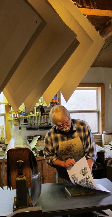 Homstad graduated from Luther College in 1973 with a BA in Art. He is a painter, muralist, and printmaker. While this exhibition focuses on his printmaking, his paintings and murals also capture the character and landscape of Iowa.