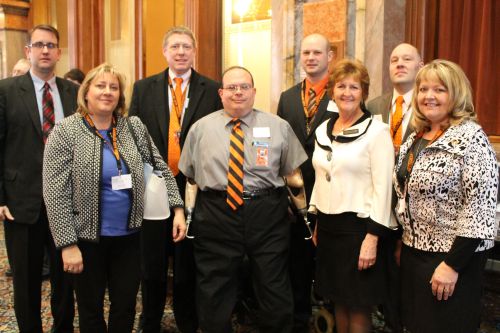 Representatives Prichard and Steckman meet with members of the Charles City Community School District at the Capitol on Tuesday February 17, 2015. Pictured with Representatives Prichard and Steckman are Superintendent Dr. Dan Cox, School Board President, Scott Dight, School Board Vice President, Jason Walker, Information Specialist, Justin DeVore, and school board members, James Frisbie, Robin Macomber, and Lorraine Winterink.