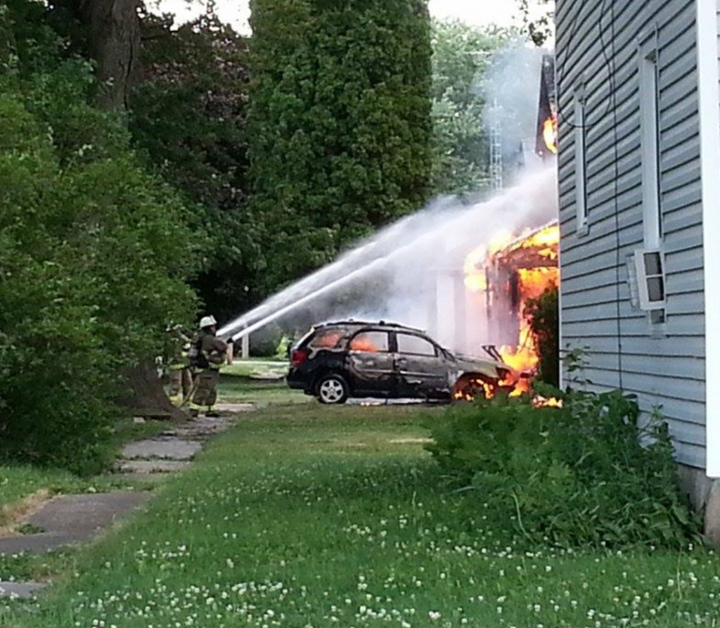 At 217 E. North Street it could be seen that the whole facade of that house was up in the flames. A SUV in the driveway was also engulfed in flames.