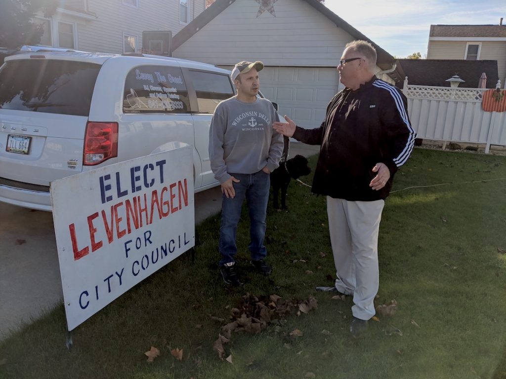 “I’m working hard. I think I can and will win. I’m experienced in so many ways. I’m ready to serve on this council,” Levenhagen said Saturday as he knocked doors on a brisk, sunny morning. “Voters are concerned about this ongoing hotel that never seems to get built. So many millions involved. I’l get to the bottom of it once I’m elected,” Levenhagen promised.