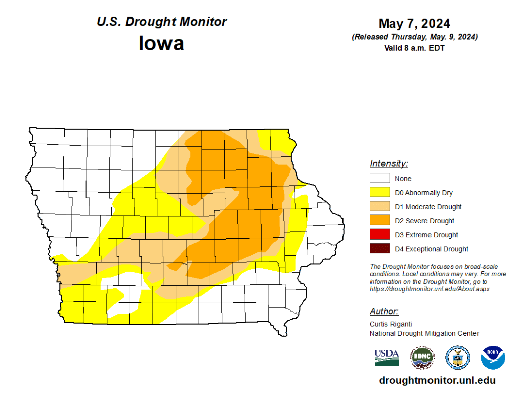 May through August normally brings half of the annual rainfall to the state, so the next few months are critical to long-term water resources in Iowa.