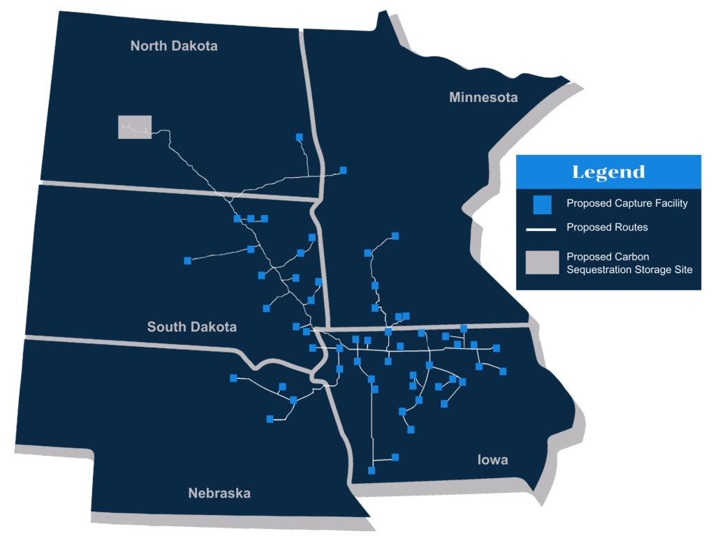 Summit Carbon is also not allowed to begin construction in Iowa until it has obtained approval from North Dakota for the route and sequestration site and approval from South Dakota for the route. The company also cannot start construction of trunk or lateral lines to ethanol plants in Minnesota and Nebraska until approvals are granted in those states.