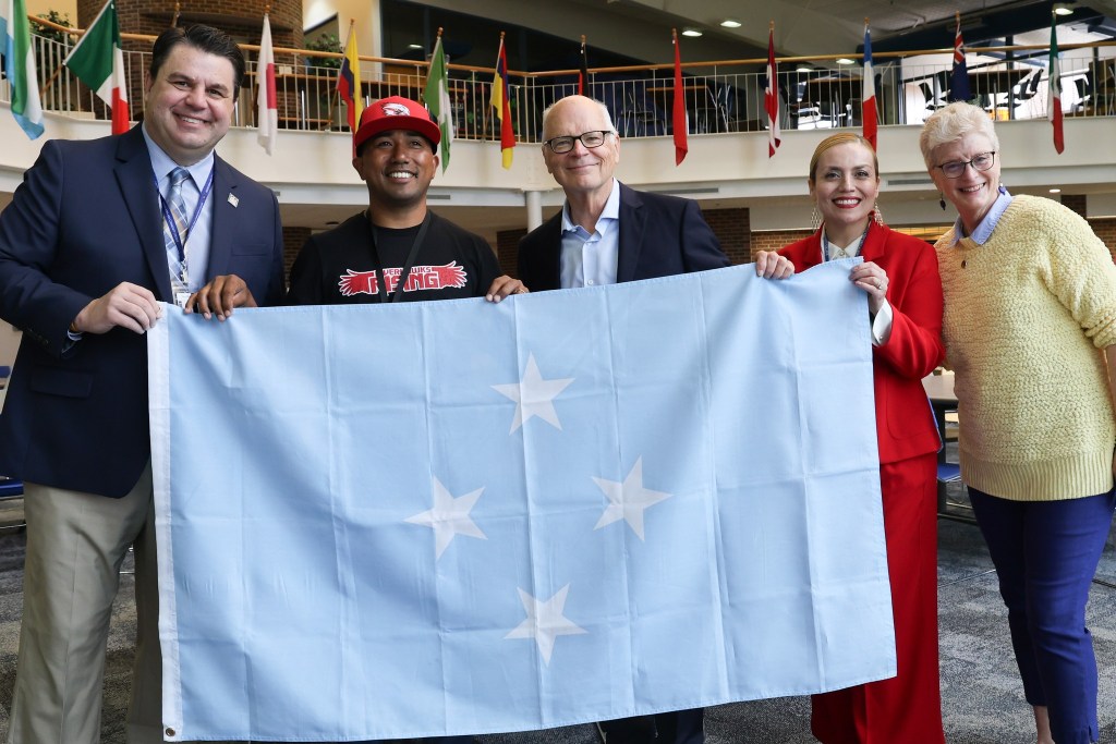MASON CITY – The flag of the Federated States of Micronesia (FSM) became part of the Gallery of Flags at North Iowa Area Community College (NIACC) in Mason City.