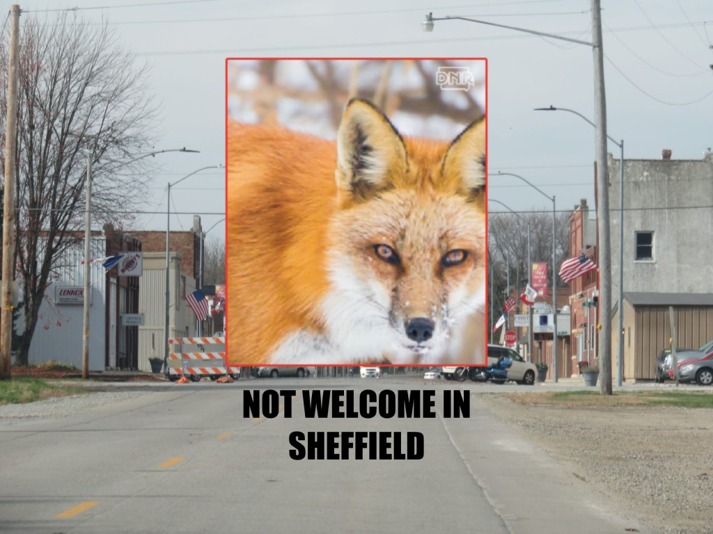 Being in a remote, rural location, there may be many hundreds of fur-coated varmints roaming about the tiny city limits, but this particular fox’s days in Sheffield are numbered. The Iowa DNR says the red fox is decidedly the most common, but gray foxes are around, too. They are omnivorous creatures that keep to themselves, mostly.