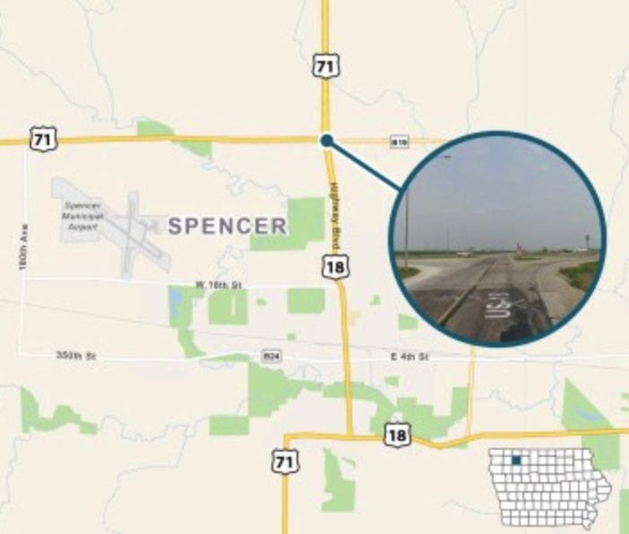 During the construction of the roundabout, traffic will be detoured along 4th Ave NW and 4th Ave W; this route will be paved and located in the southwest quadrant of the U.S. 18 and U.S. 71 intersection. Construction is expected to start spring of 2027 and end fall of 2027.
