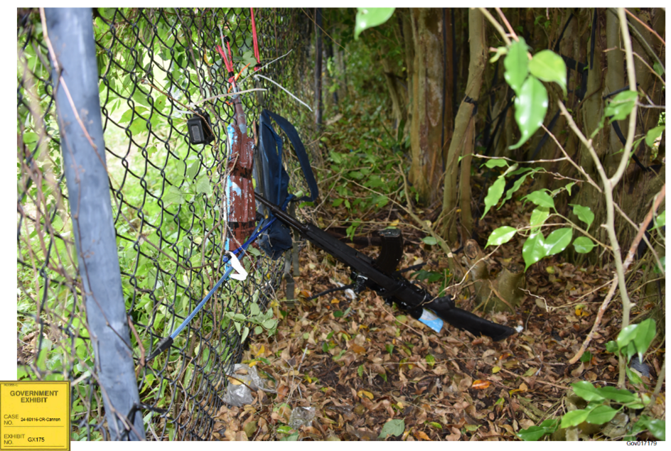 According to the evidence presented at trial, then-U.S. Secret Service Special Agent Robert Fercano – who was patrolling one hole ahead of the president at the golf course – spotted Routh pointing an AK-style rifle at Special Agent Fercano from a sniper’s hide in the fence abutting the golf course. Agent Fercano, in fear for his life and the life of President Trump, opened fire at Routh, who fled. Law enforcement subsequently found a loaded SKS-style rifle equipped with a scope, a magazine containing an additional nineteen rounds of ammunition and the safety off, steel armor plates, and a camera attached to the fence pointing toward the sixth hole green of the golf course, where Routh had been hiding: