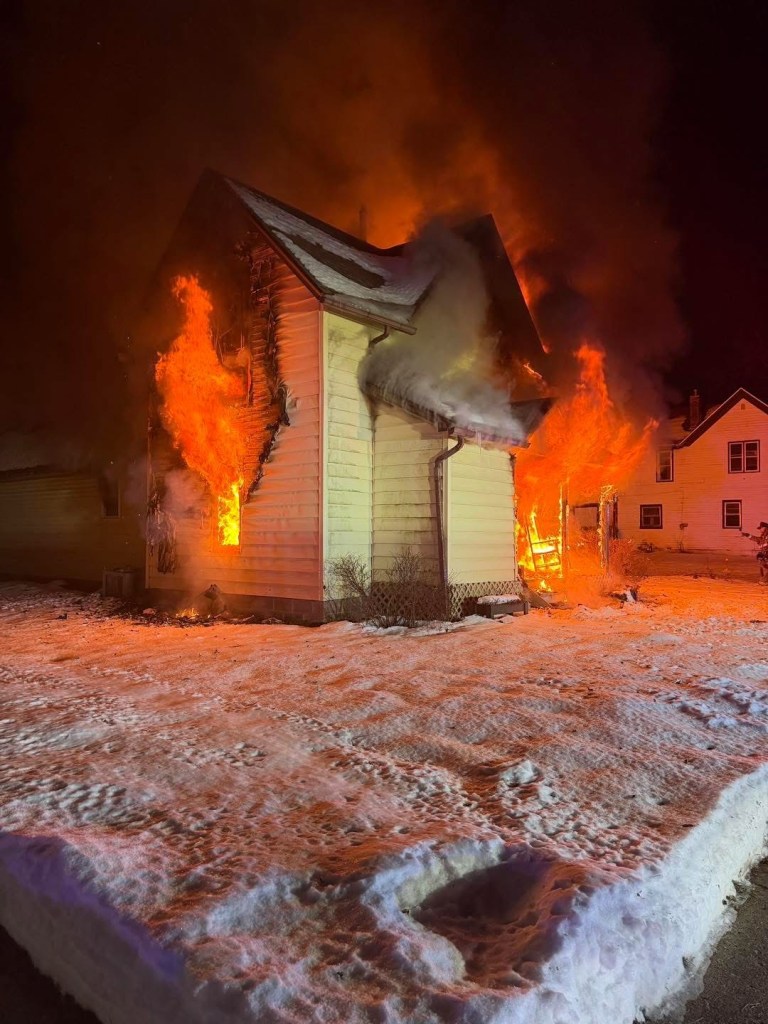FORT DODGE – A Fort Dodge house fire over the weekend sent home occupants scurrying for safety in the frigid night air as the structure burned completely, claiming a dog’s life and injuring a firefighter.