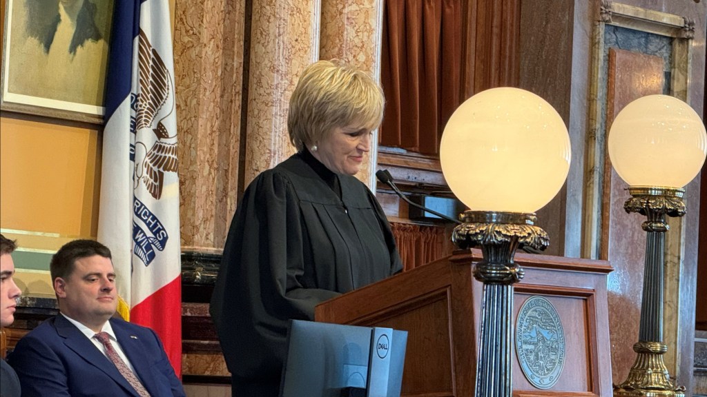 Chief Justice Susan Christensen followed with the Condition of the Judiciary address, highlighting challenges facing Iowa’s court system and urging lawmakers to address judicial salary levels, shortages of court-appointed attorneys, and modernization of the magistrate system to improve efficiency and fairness.