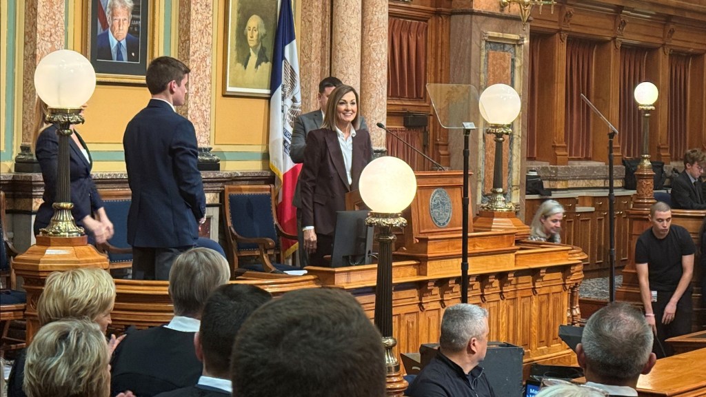 Governor Reynolds delivered the Condition of the State address, reviewing major accomplishments from prior years, including eliminating taxes on inheritance and retirement income, reducing the corporate income tax, and implementing a 3.8 percent flat tax for individuals. Her top priorities for 2026 include property tax reform and maintaining responsible, sustainable state budgets.