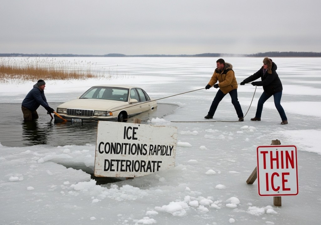 “We emphasize that ice thickness varies on each body of water. It’s a good reminder that no ice is 100 percent safe – and to trust your instincts – if it doesn’t look right, stay off,” Cutts said.