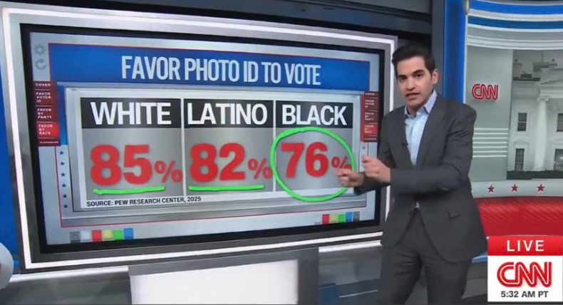 CNN reported that American overwhelmingly support the SAVE Act and requiring citizens to show ID when voting (see graphic at right.)