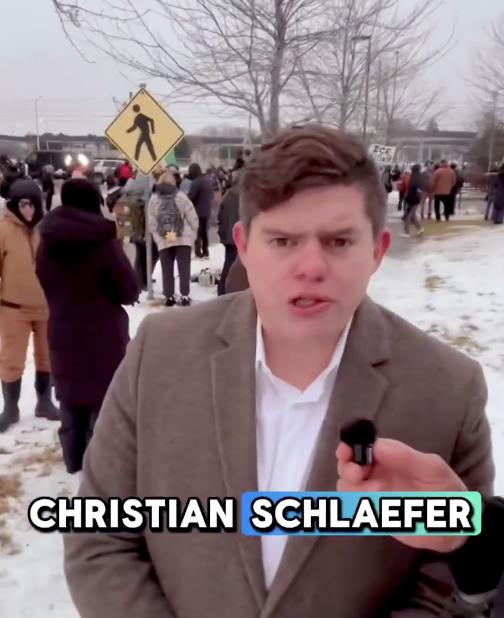 While in Minneapolis on January 9, Schlaefer (pictured at top, interviewed at the scene … see interview at bottom of story) noted what he described as an absence of visible state and local law enforcement, leaving federal agents isolated while protestors freely occupied major city streets.